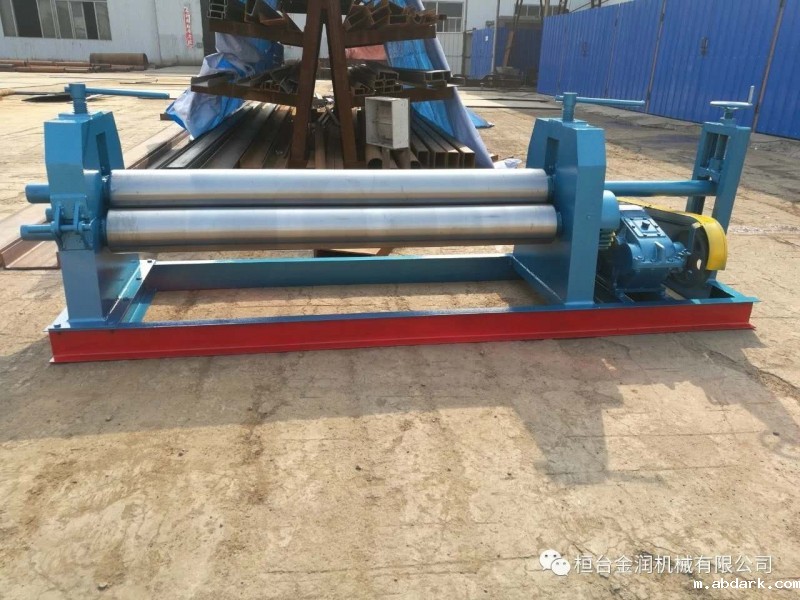 半自动ag九游会官网登录中心,该机结构式为三辊对称式,上辊在两下辊中间对称位置作垂直升降运动,通过人工拧动丝杆使上辊垂直升降,两下辊作旋转运动,通过减速机的输出齿轮与下辊齿轮啮合,为卷制板材提供扭矩。上辊可分离取料手动升降起辊。