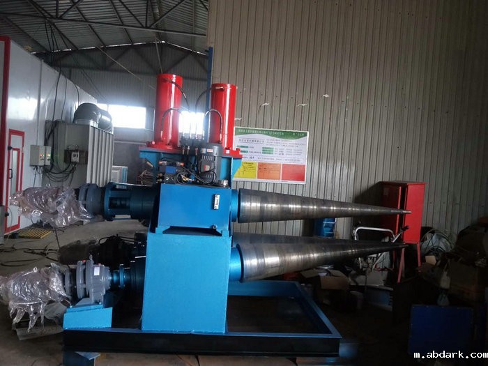 锥形ag九游会官网登录中心卷板进程与进程一般都选用强制送料的办法,靠锥形小口与ag九游会官网登录中心前端强制限位挡块磨擦,迫使锥形大小口成型发生速度差,到达ag九游会官网登录中心上辊的素线一直与锥形坯料的素线重合,完结锥形成型,所以锥形小口下料时有留有锥形小口与ag九游会官网登录中心限位挡块彼此磨损效果的工艺余量。